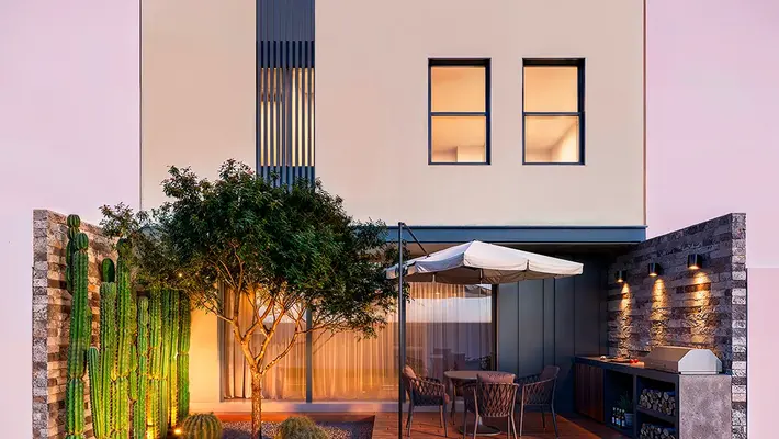 With a surface area of 250 m² distributed over three levels, each floor has been carefully zoned to provide identity and autonomy to its spaces. The interior design adopts a minimalist aesthetic, based on a warm and contemporary color palette. The selected materials prioritize low maintenance, ensuring functionality without compromising the comfort or warmth of the spaces.